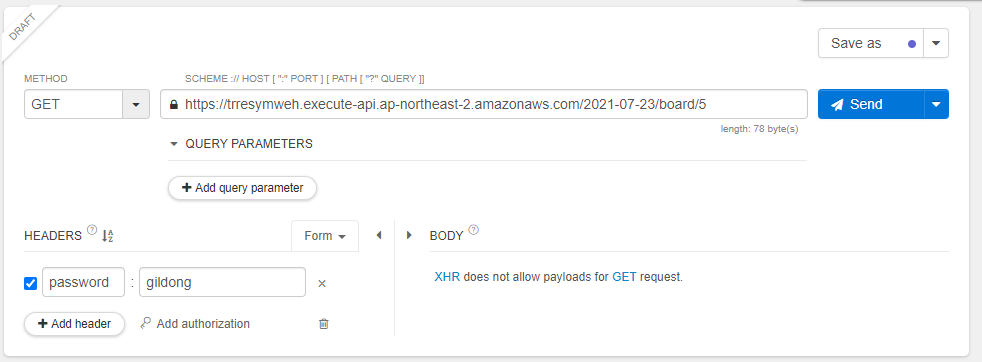 이렇게 헤더에 password라고 해서 현재 게시글의 비밀번호를 보내야한다고 가정을 한다.