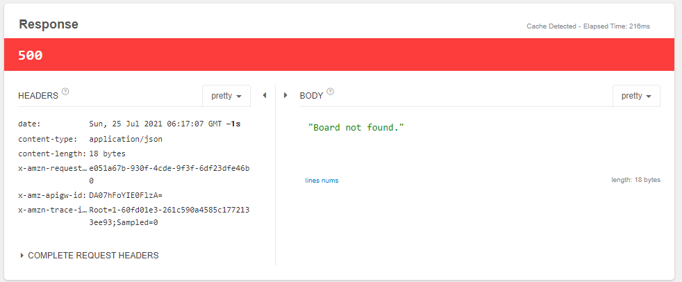 오류가 발생했을 때 상태코드 500으로 오류의 내용을 출력하고 그렇지 않다면 가져온 Board 정보를 그대로 반환할 수 있도록 하면 된다.