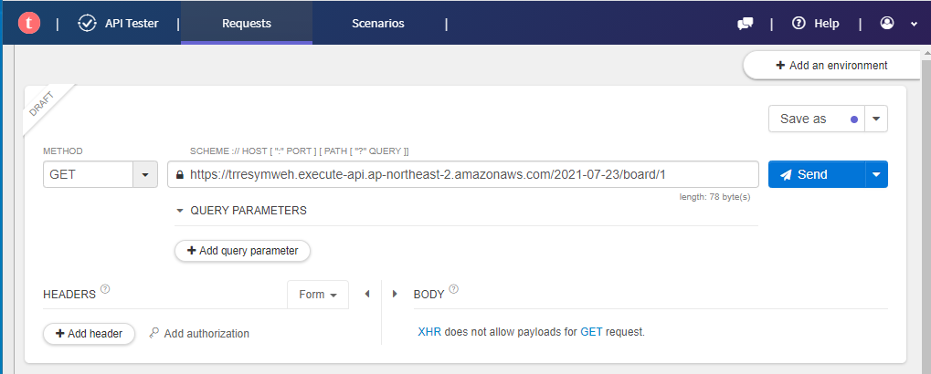 또한 여기에서는 event.pathParameters가 null 값일 때 즉 진짜 말그대로 board라는 경로에 접속했을 때에 대해서 처리를 해주고