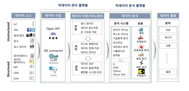 빅데이터 관리 플랫폼 : 데이터를 수집하여 활용 가능한 형태로 저장,처리,관리 등을 수행하는