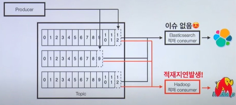 하둡에 이슈가 발생하여 컨슈머의 적재지연이 발생하더라도 엘라스틱서치에 적재하는 컨슈머의 동작에는 이슈가 없음