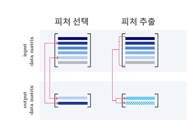 일반적으로 차춴축소는 피처 선택과 피처 추출로 나눌 수 있다.