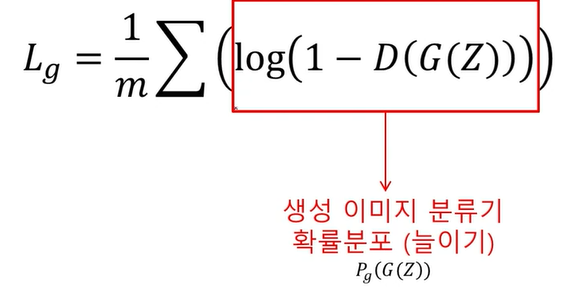 -> 생성이미지 출신 저하(생성이미지가 가짜다) & 원래이미지 출신 상승(원래이미지에 대한 확률을 높게 평가한다)