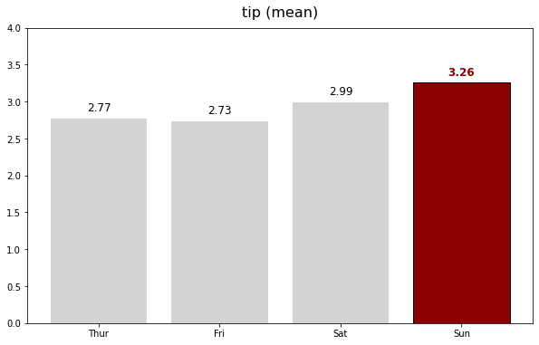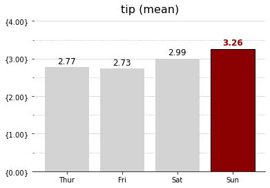 h_mean = np.round(group_mean.sort_values(ascending=False)[0], 2) # 가장 높은 평균, 즉 Sunday의 평균 21.41