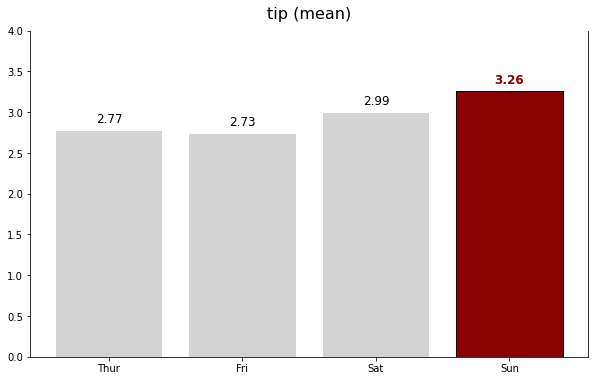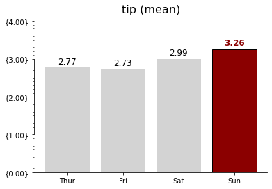 ax.text(i, tips_day["tip"].loc[i] + h_pad, f"{tips_day['tip'].loc[i]:0.2f}",