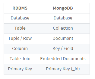 - Database - Collection(table대신) - Document(low 대신에, column이라는 개념이 없다.)