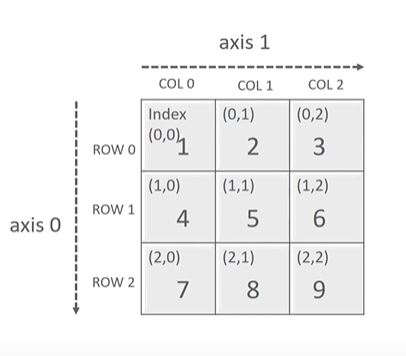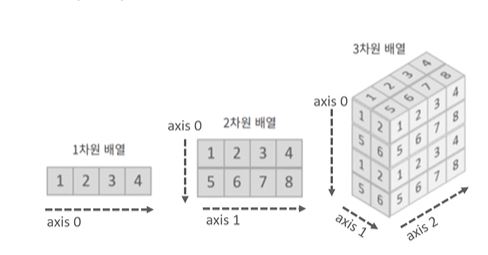 넘파이 ndarray의 axis축 JiHun 2021-04-01Python 공부 ndarray는 shape는 행,열,높이 단위로 부여되는 것이 아니라 axis0,axis1,axis2와 같이 axis 단위로 부여됩니다.