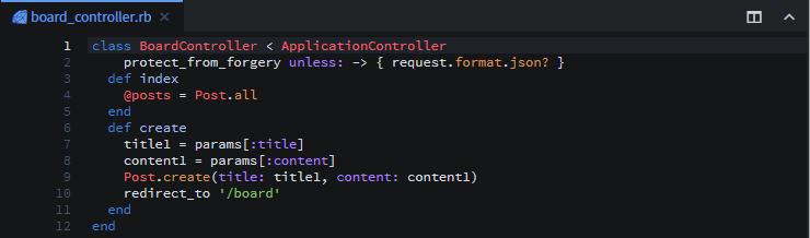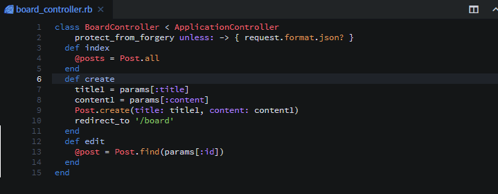 마찬가지로 redirect_to '/board' 로 설정해줘서 원래 화면으로 돌아가게끔 만들어준다.