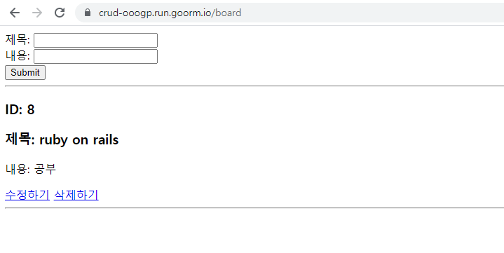 루비 온 레일즈를 이용해 게시판을 만들면서 MVC 패턴을 만들어보고 DB와 연결해 CRUD를 실습