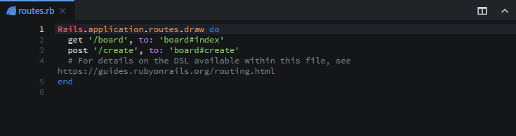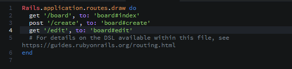 수정을 하기 위해 routes.rb에 get '/update', to: 'board#update' 라우팅 추가