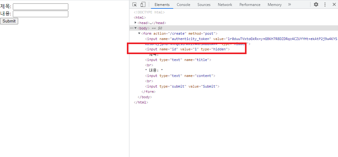 우리가 제목과 내용 정보를 채워주고 /create라는 주소로 보내줬습니다.